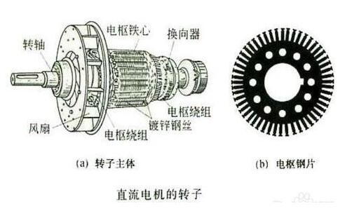 轉(zhuǎn)子部分的電樞鐵芯是主磁路的組成部分,電樞繞組由一定數(shù)目的電樞線圈按照一定的規(guī)律鏈接組成,是直流電機的電路部分,產(chǎn)生感生電動勢,進行機電能量的轉(zhuǎn)換。而換向器主在直流發(fā)電機中主要起整流的作用,而在電動機中起的是逆變作用。